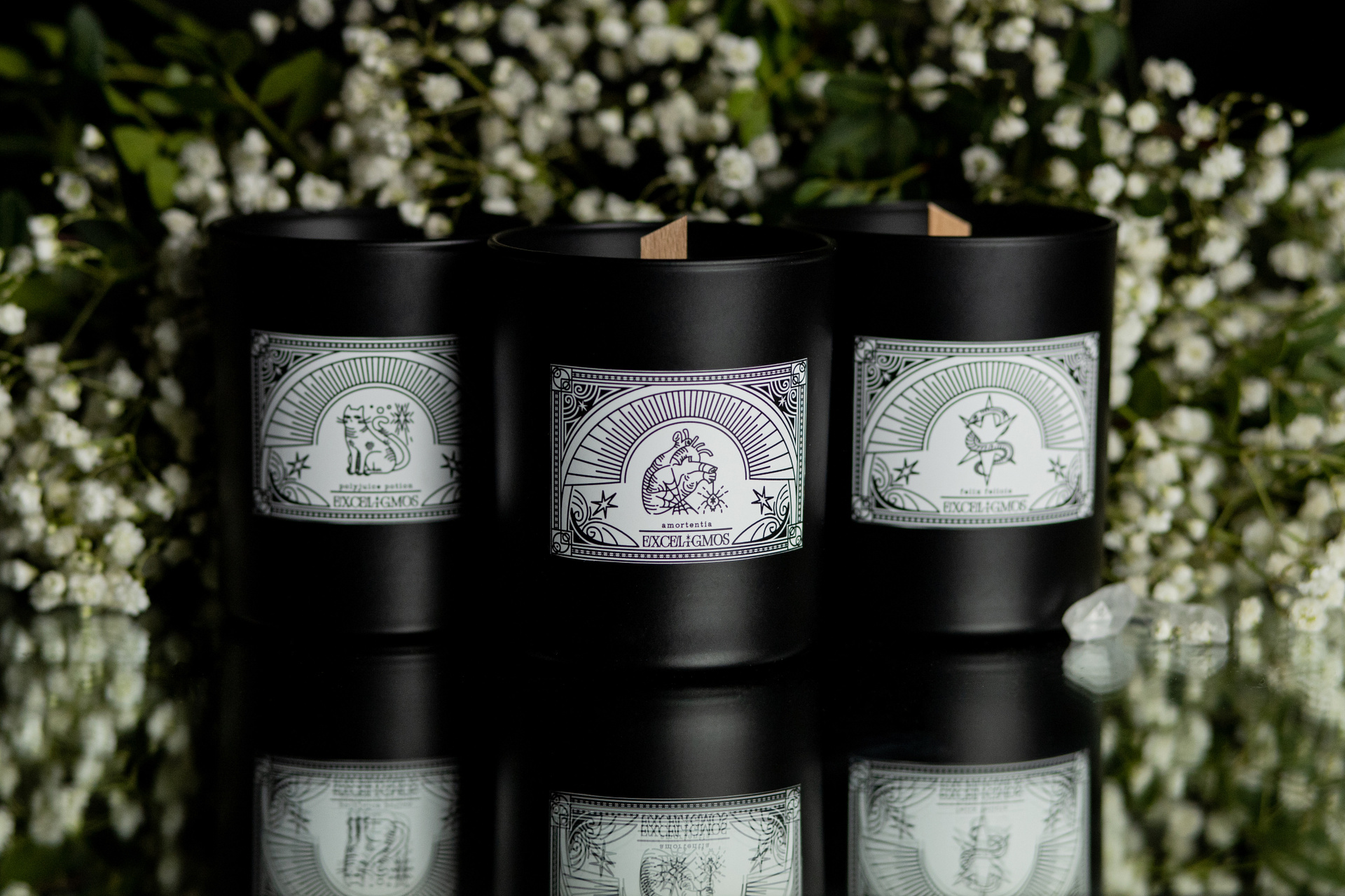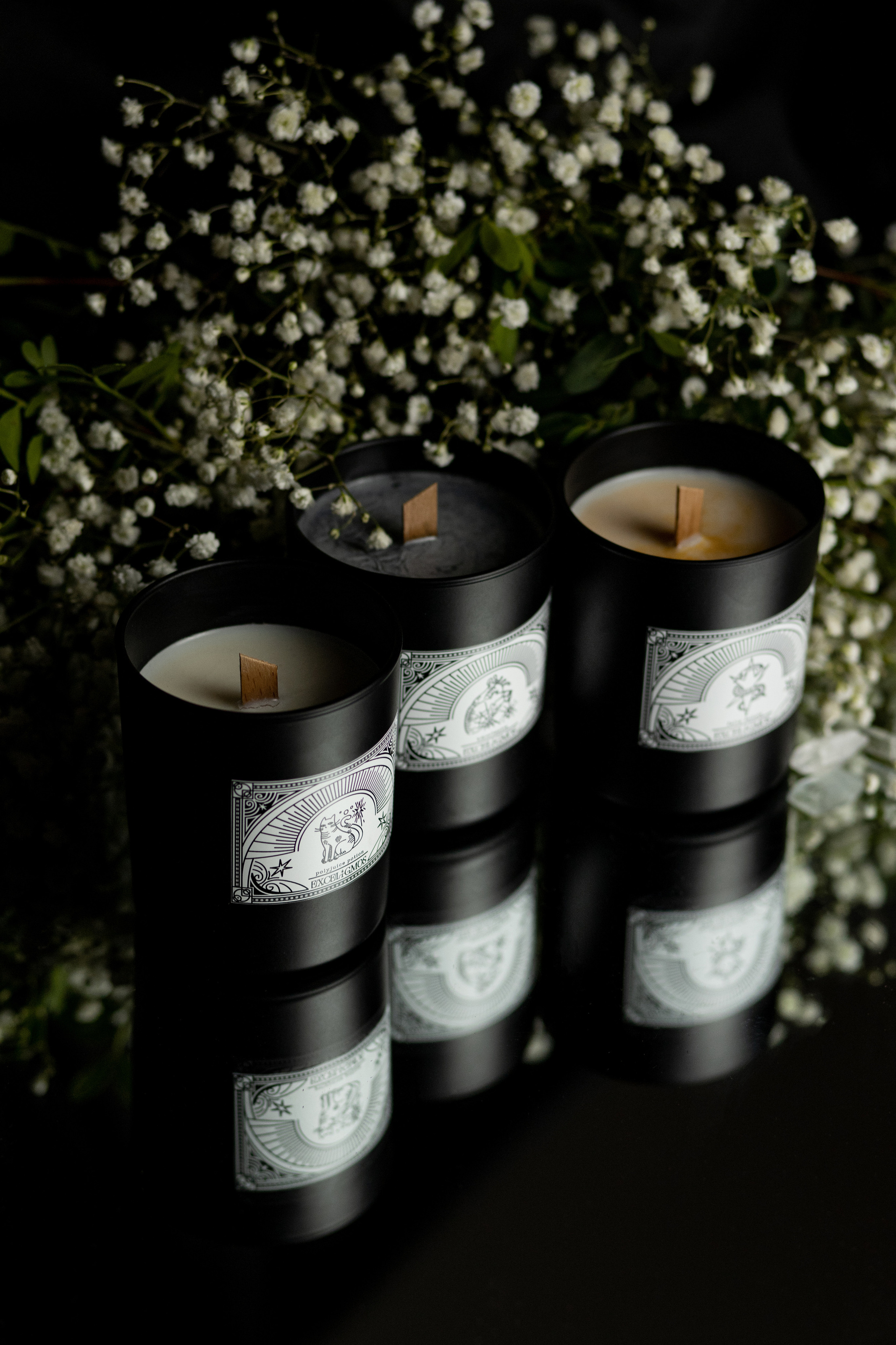 Продуктовая съемка для нового бренда. Лимитированная коллекция из трех позиций — контейнерных свечей по мотивам вселенной Гарри Поттера.